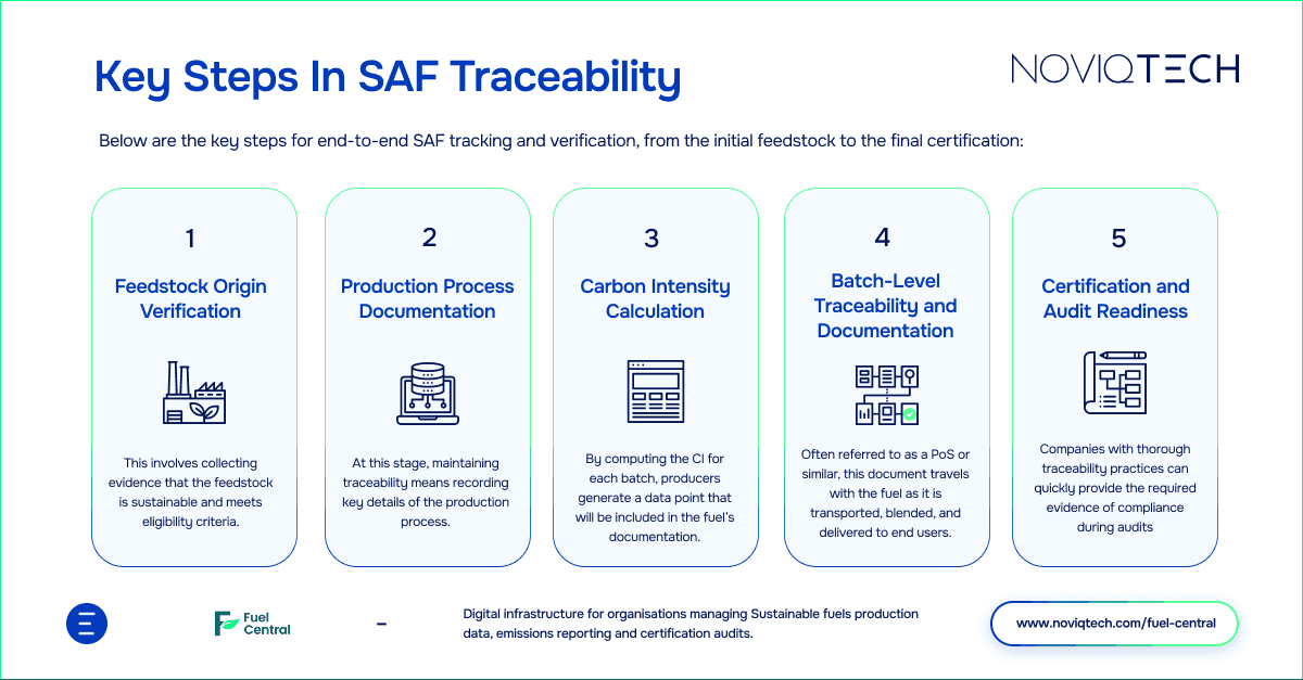 In other words, maintaining traceable records isn’t just for show, it directly supports audit readiness. When regulators or certification bodies come knocking, a producer with end-to-end traceability can prove every claim with data, ensuring they remain in good standing and their SAF is recognised as sustainable.